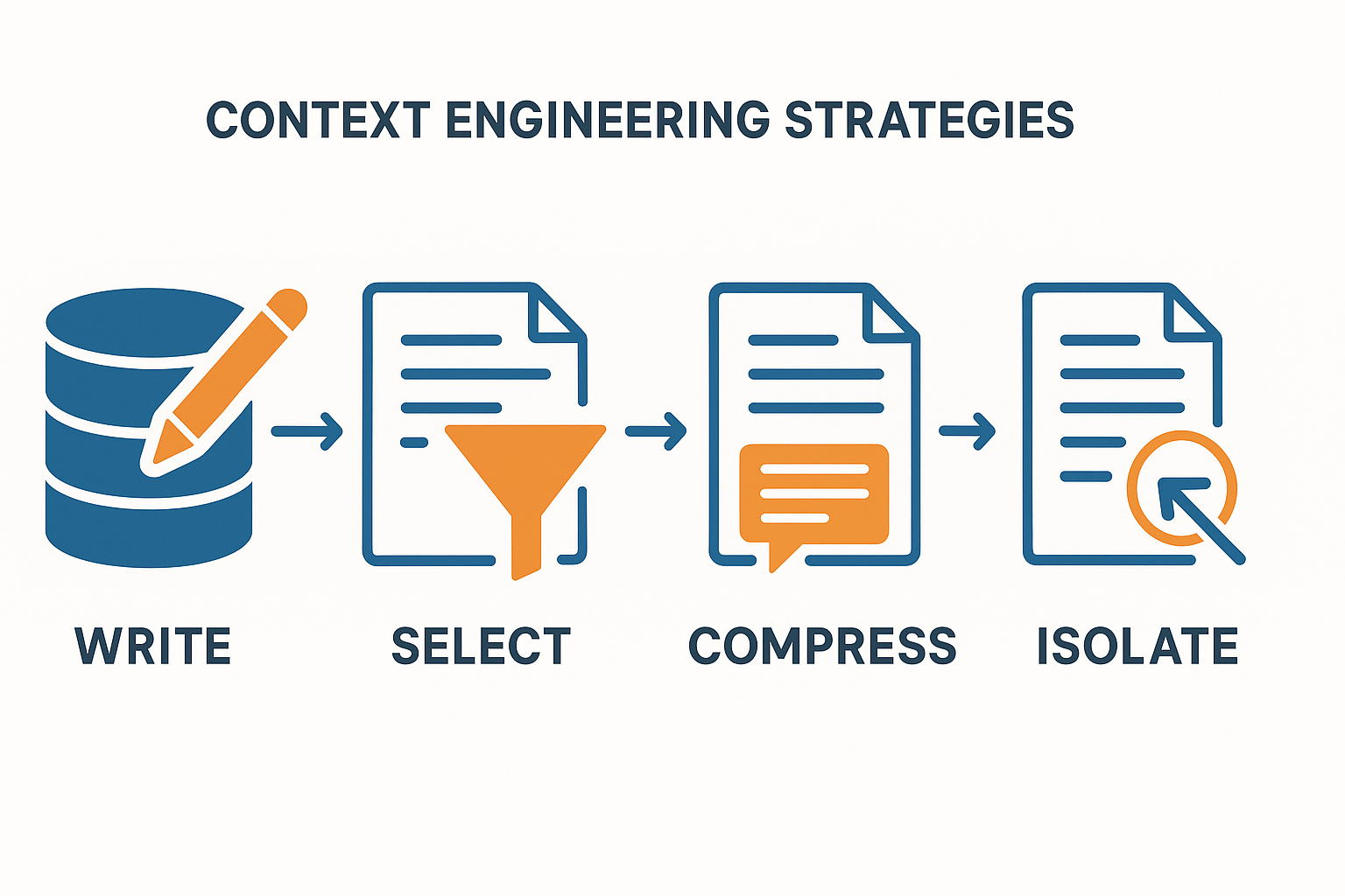 では、具体的にどのようにコンテキストを操作するのでしょうか。LangChainなどのフレームワークでは、いくつかの戦略が提唱されています。ここでは、その中でも代表的な4つのアプローチをご紹介します。